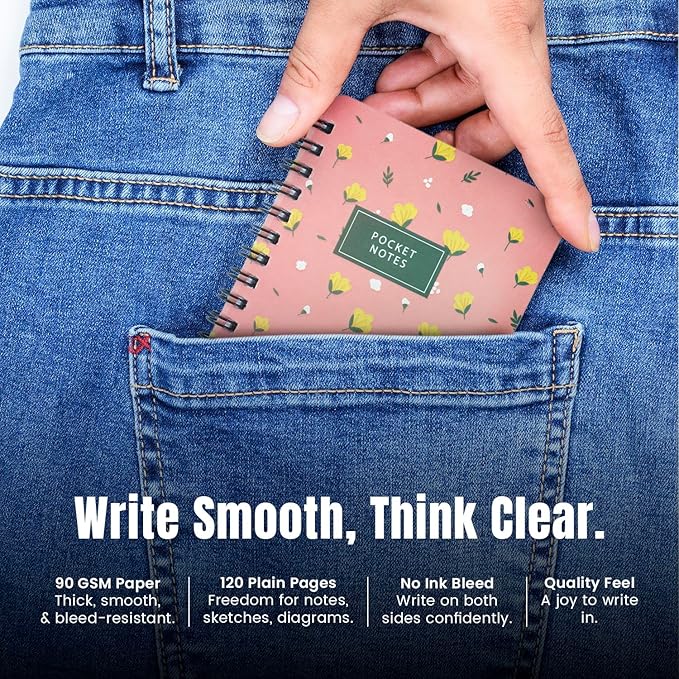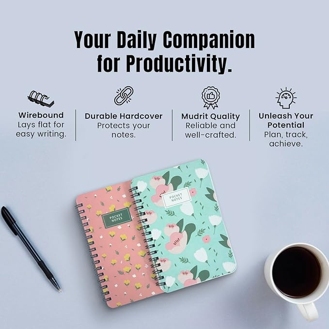 Small in size, big on purpose. This 2-pack of Mudrit A6 Wirebound Notebooks is perfect for capturing gratitude lists, goals, or quick ideas on the go. Compact, colorful, and easy to carry—your everyday companion for notes, thoughts, and creativity.