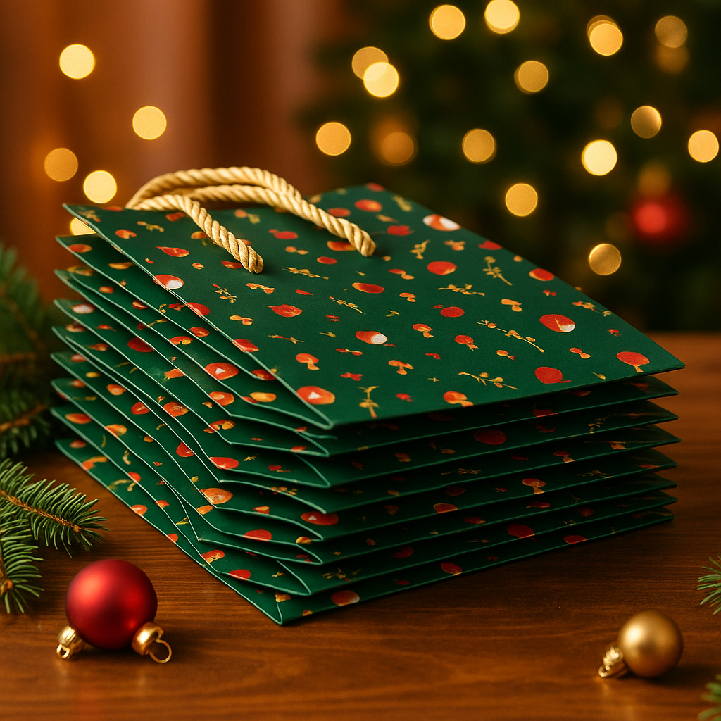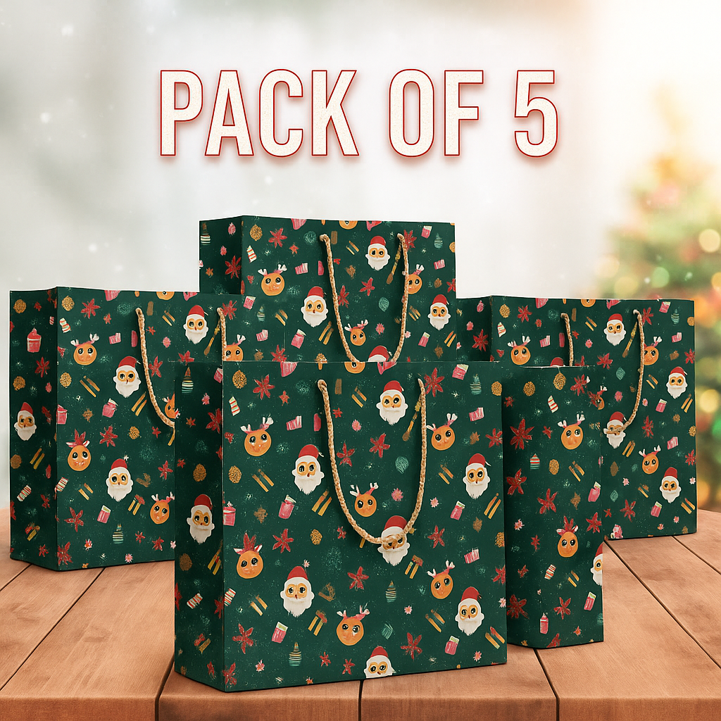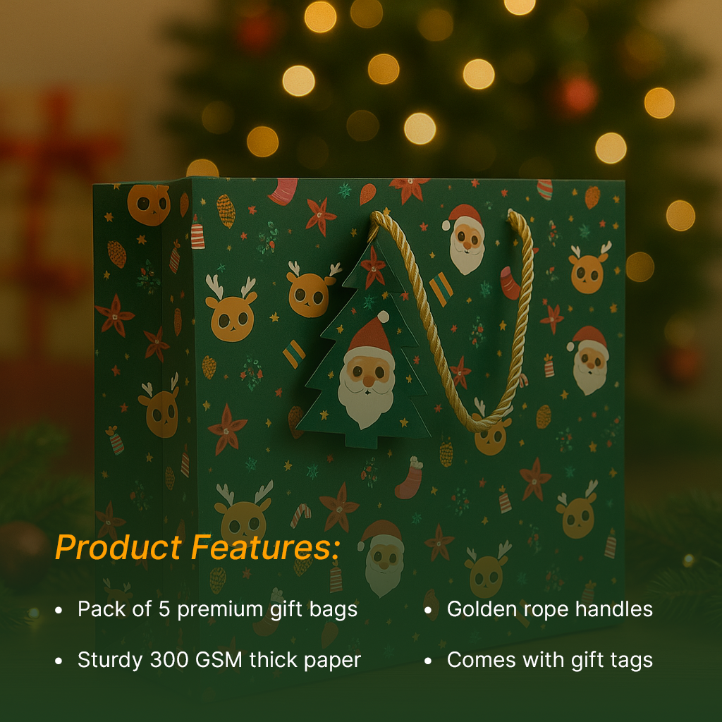 Celebrate the season in style with Mudrit Christmas Paper Gift Bags (Green, Pack of 5) — festive, functional, and beautifully crafted for holiday gifting. Featuring a cheerful holiday theme and sturdy handles, these bags make presenting gifts effortless and elegant. Perfect for birthdays, secret Santa, party favors, or special surprises, they bring joy to both giving and receiving.