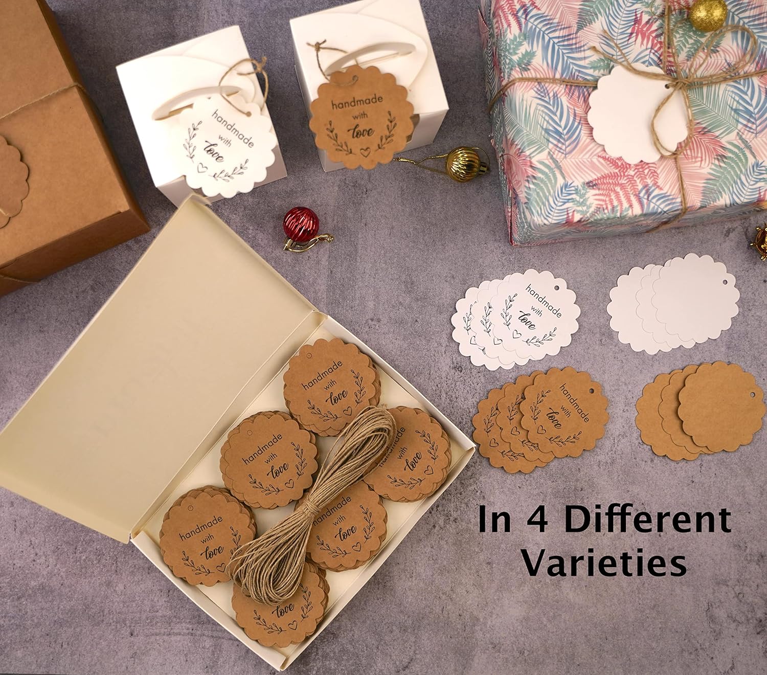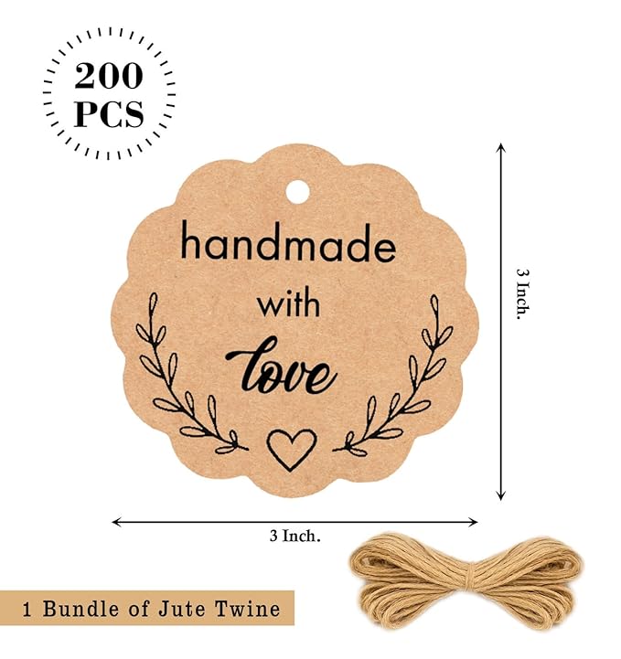 Add a charming touch to your crafts and gifts with this value pack of 200 scalloped-shaped paper tags, available in two styles (printed "Handmade with Love" and plain) and two colors (kraft and white). Perfect for wedding favors, gift tags, cupcake toppers, Mason jar labels, and more. The blank back allows for personalized messages or custom labels, making them ideal for any DIY or packaging project!