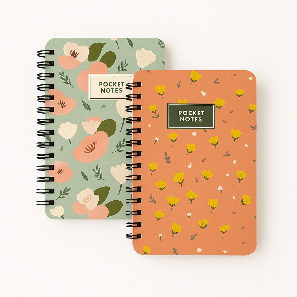 Add charm to everyday note-taking with Mudrit Pocket Spiral Notebooks. Featuring warm pastel tones and elegant floral illustrations, these compact notebooks are designed to slip easily into your bag or pocket. Perfect for quick notes, ideas, goals, or reminders, they blend functionality with a cheerful, aesthetic appeal—ideal for work, travel, or daily planning.