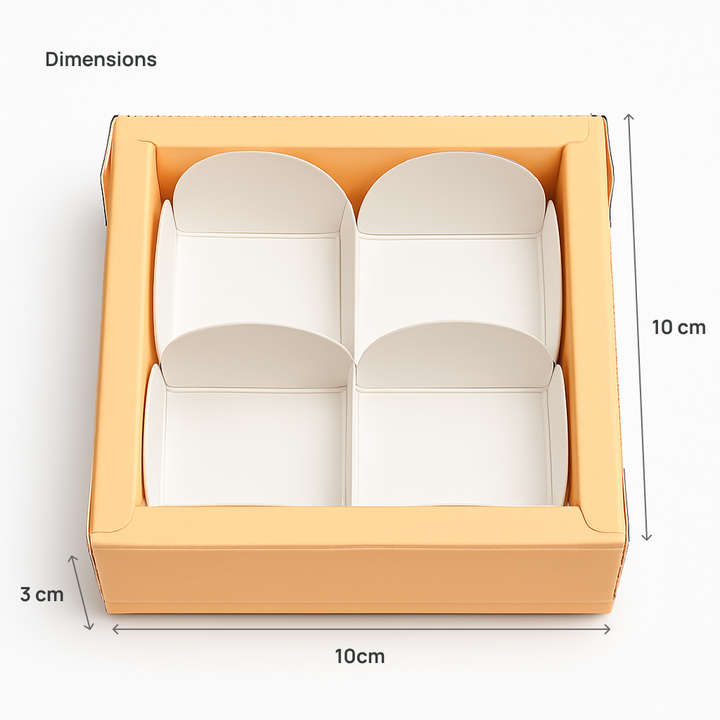 Present chocolates and sweets beautifully with Mudrit’s elegant 4-cavity chocolate gift boxes. Designed for a neat, premium presentation, these boxes are perfect for gifting truffles, mithai, ladoos, brownies, or dry fruits on festive and special occasions.