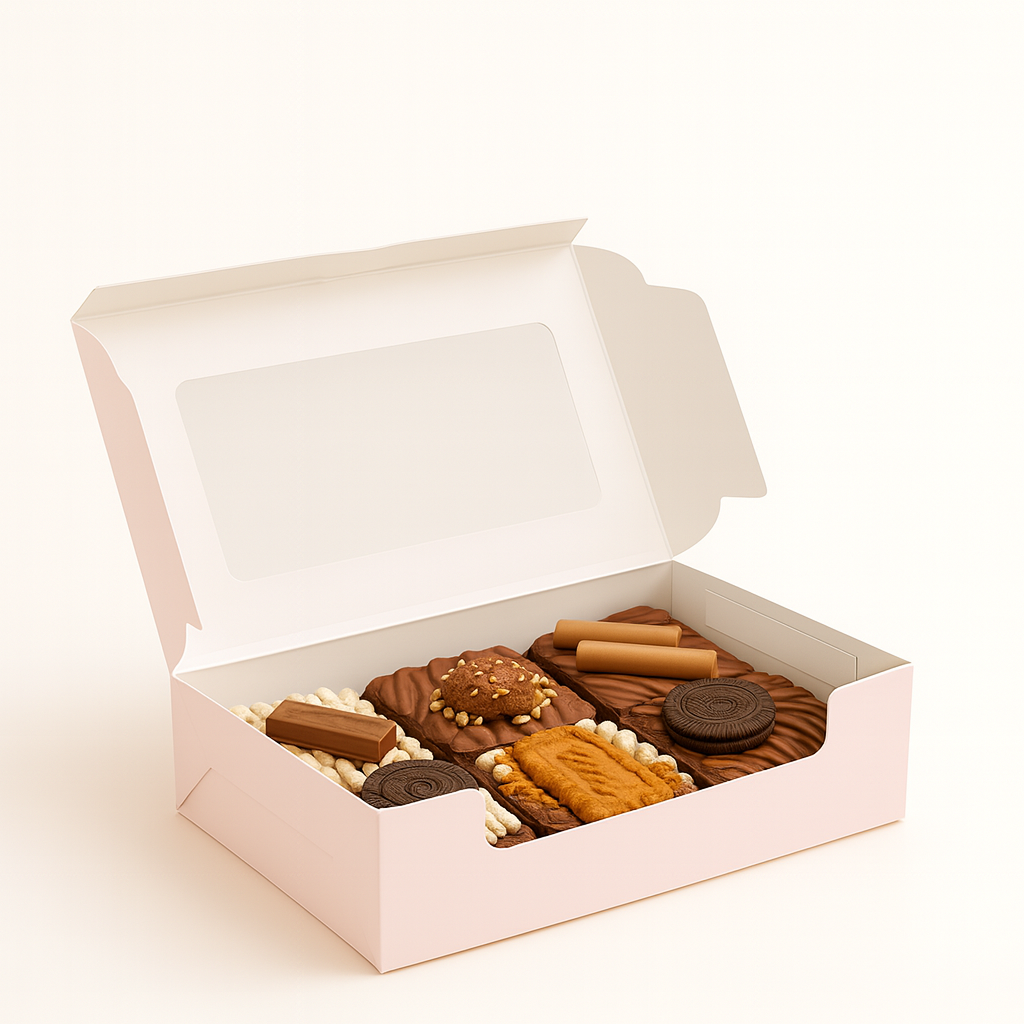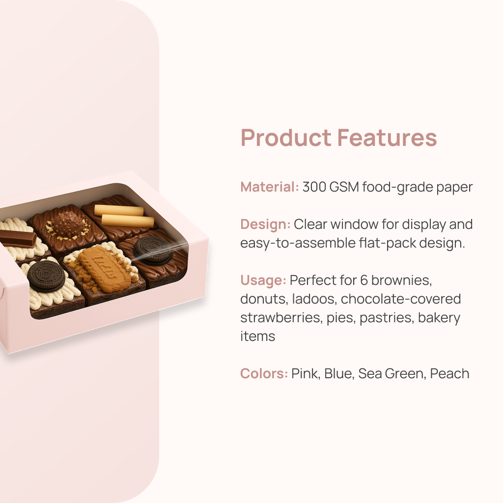 Present your baked treats in style with Mudrit Bakery Boxes with Window. Designed to hold six brownies or assorted desserts, these sturdy boxes feature a clear display window that enhances presentation while keeping your treats fresh and secure—perfect for bakeries, cafés, and home bakers.