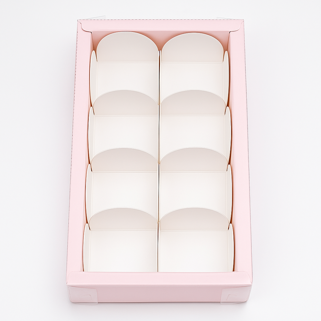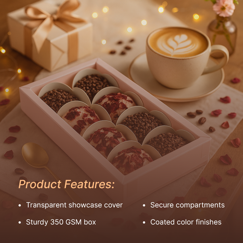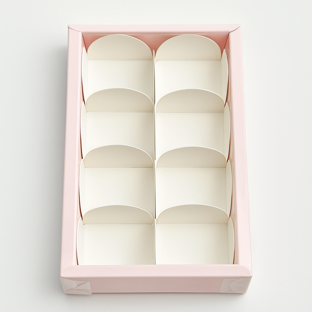 Elevate your gifting with Mudrit’s elegant 8-cavity chocolate gift boxes, designed for a neat and professional presentation. Perfect for truffles, mithai, ladoos, brownies, or dry fruits, these pink-toned boxes combine durability with a refined look, making them ideal for festive, wedding, and corporate gifting.