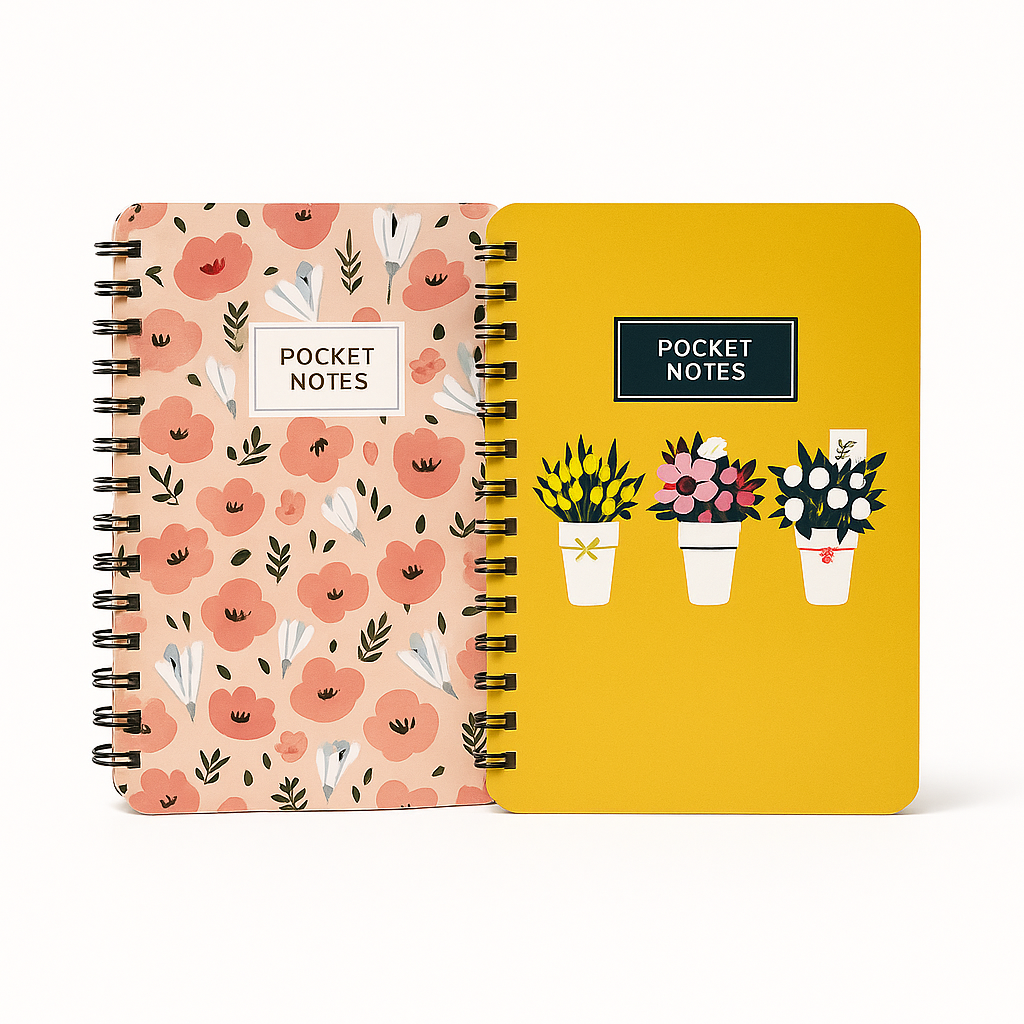 Add charm to everyday note-taking with Mudrit Pocket Spiral Notebooks. Featuring warm pastel tones and elegant floral illustrations, these compact notebooks are designed to slip easily into your bag or pocket. Perfect for quick notes, ideas, goals, or reminders, they blend functionality with a cheerful, aesthetic appeal—ideal for work, travel, or daily planning.